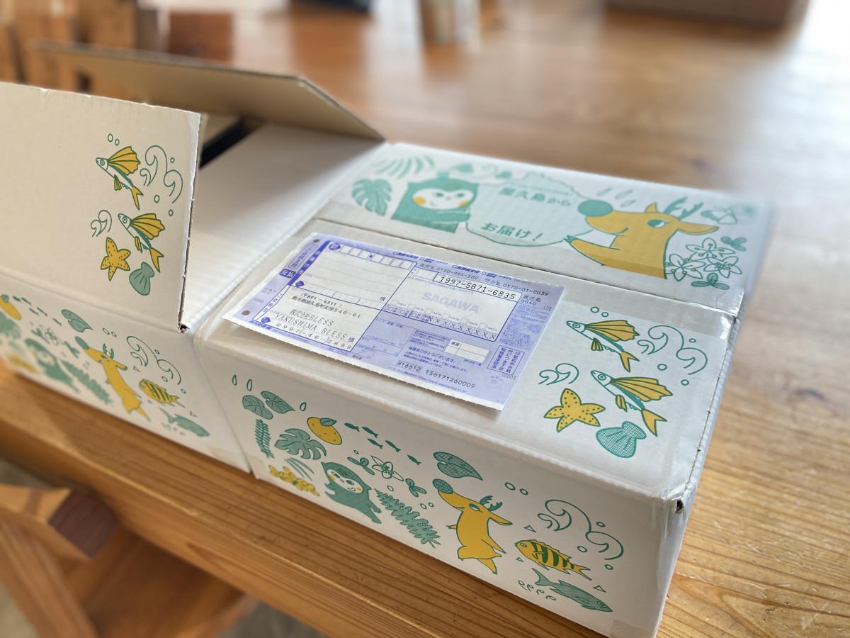 「YAKUSHIMA BLESS(ヤクシマブレス)」(屋久島町安房)が2月18日、屋久島に生息するサルとシカのキャラクター「やくさんとジョー」の宅配用段ボール箱を発売した。