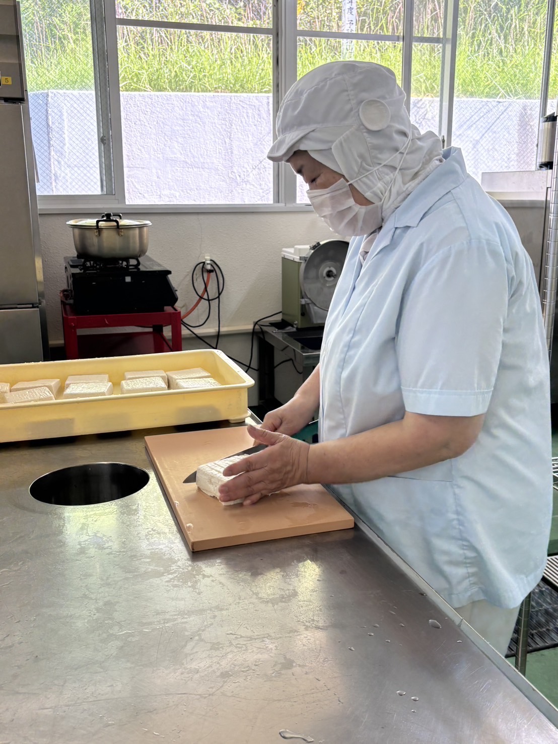 同法人は屋久島町役場で5月に開かれた、学校給食の食育地産地消推進計画の話し合いに参加。九州産大豆を使い、昔ながらの製法で作ったよかたん豆腐を紹介したところ、屋久島町西部地区共同調理場の栄養教諭・堀ノ内千幸さんが給食に使いたいと申し出た。