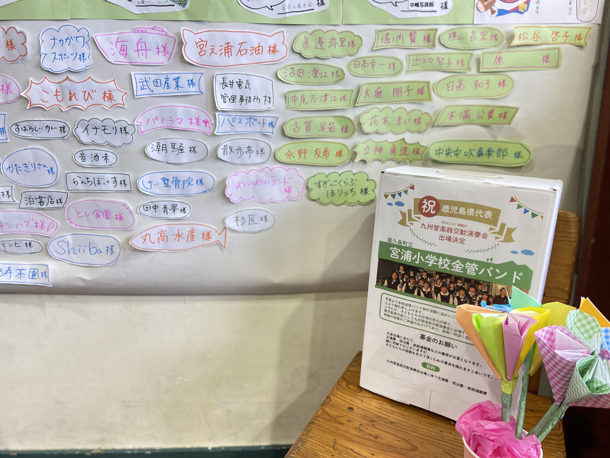 当日は、2月22日に「熊本県立劇場」(熊本市)で開催される「九州小学校管楽器交歓演奏会」に初出場し、鹿児島県代表として演奏する予定の「火の国モンタージュ」「栄光をたたえて」などを披露。第2ステージでは「中央中学校吹奏楽部」「屋久島高校吹奏楽部」、社会人を中心に結成した「屋久島吹奏楽団」の3団体が賛助出演し、コンサートを盛り上げた。近隣から200人ほどが集まり、児童の演奏に拍手を送った。