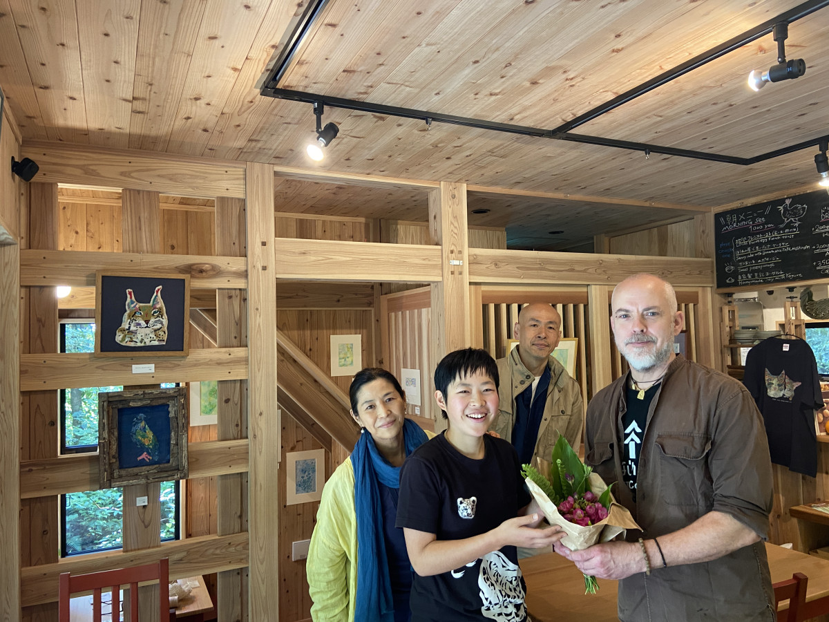 中央がアーティストの伊藤花さん、花さん家族とアンダースさん