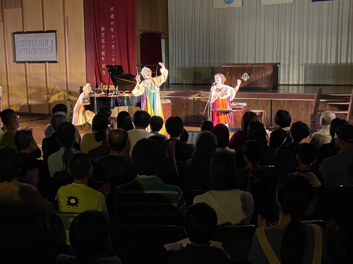 「上風(シャンプー)」のライブが10月20日、小瀬田小学校(屋久島町小瀬田)の体育館で開催された。